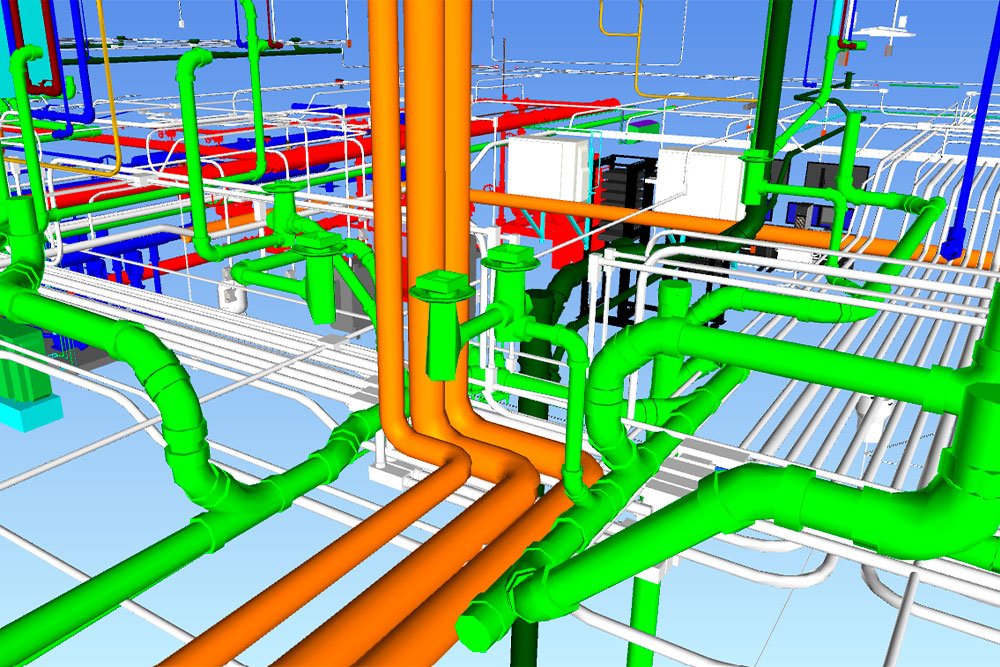 Modelar las instalaciones (MEP: mecánicas, eléctricas y de fontanería) como parte de la metodología BIM (Building Information Modeling) es crear una representación digital precisa e inteligente del edificio. Esto permite una mejor coordinación, detección de errores y optimización de costos y tiempo antes de la construcción física.